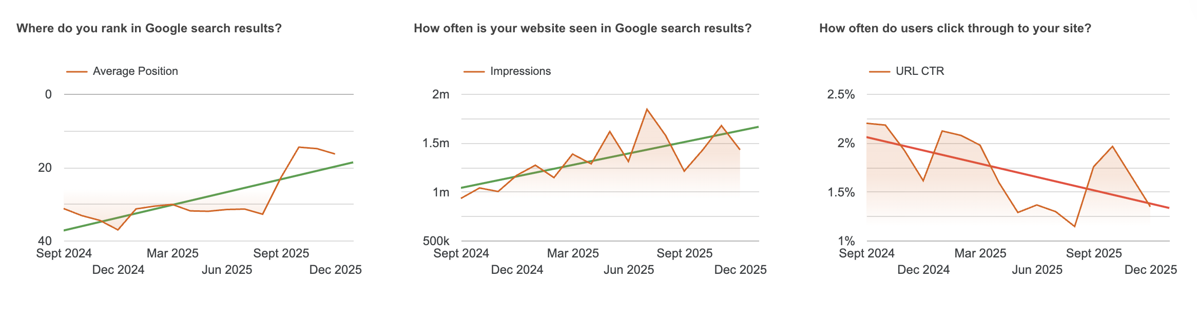 These metrics have informed budget decisions, content priorities, and competitive strategy. Rising impressions and improving rankings signalled growing discoverability. Increasing clicks and conversions confirmed that visibility was translating into engagement and pipeline opportunity.